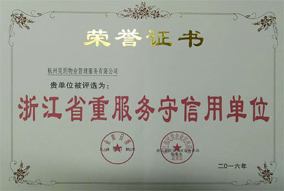 2016年榮獲浙江省十佳物業